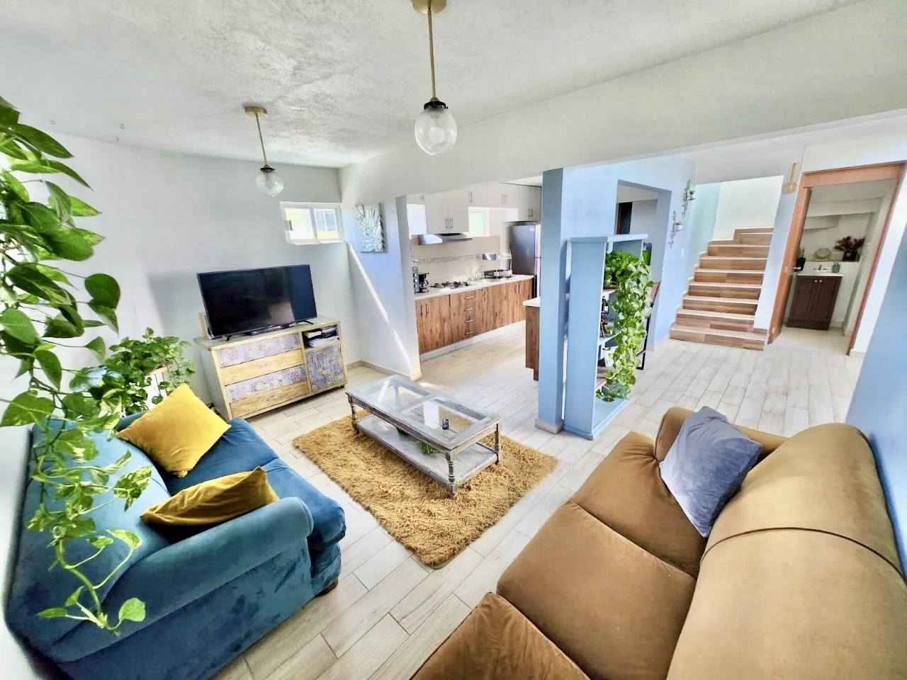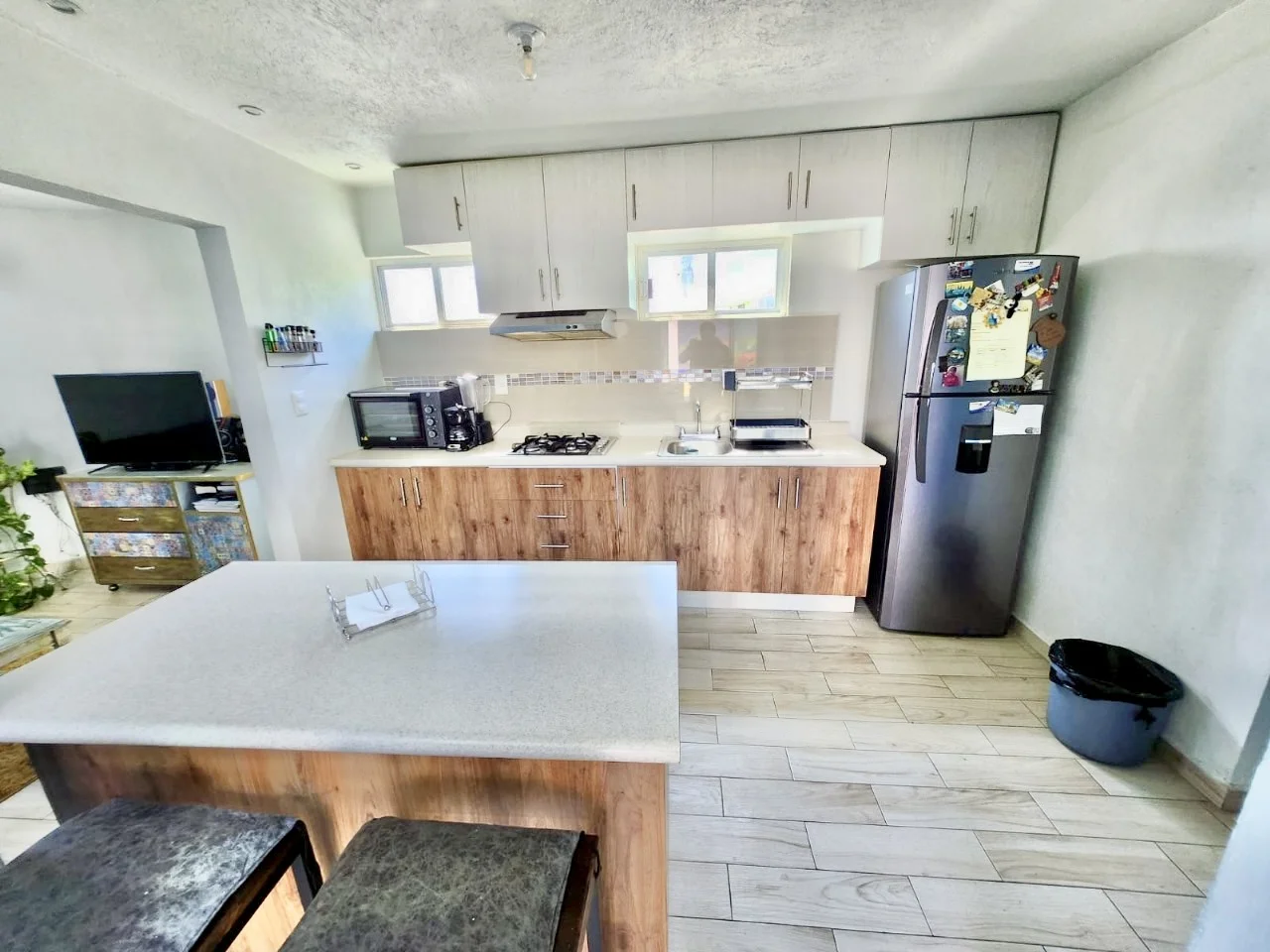 Planta baja: estancia-comedor moderna cocina integral con acabado de granito 1 baño completo área de lavado.