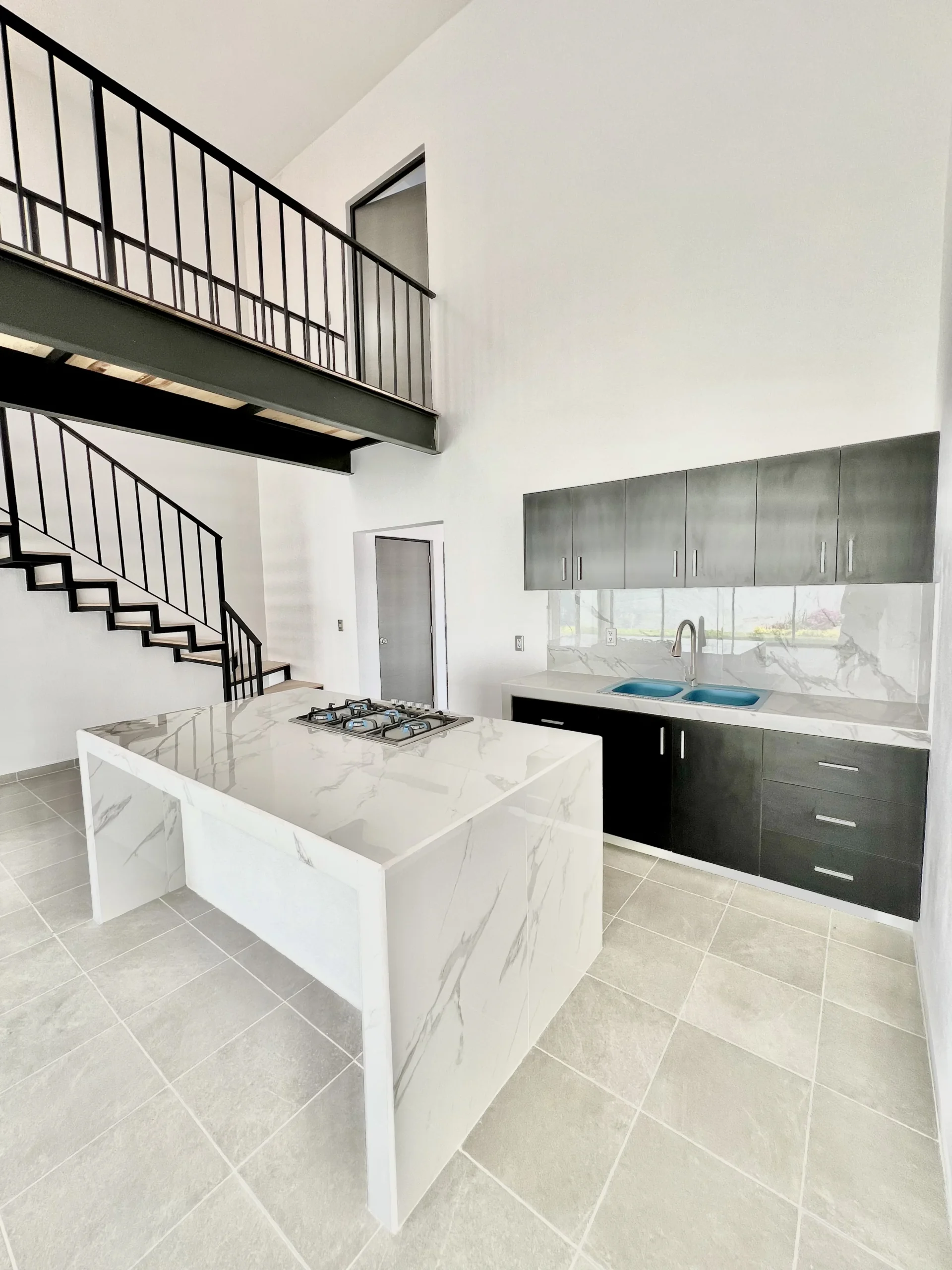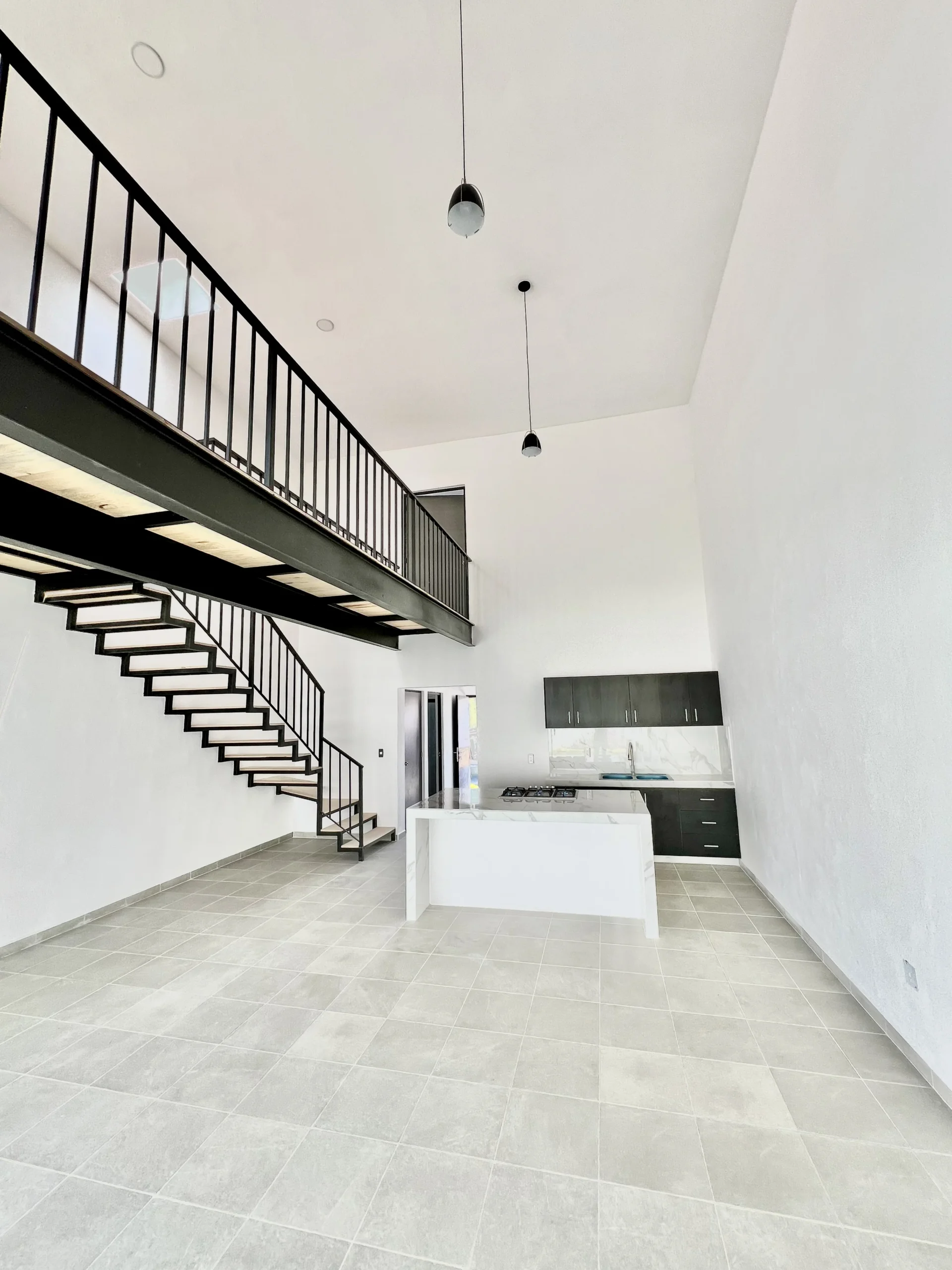 Planta baja sala con vista al jardín y doble altura comedor formal moderna cocina integral 1 baño completo área de lavado con acceso desde el garaje recámara/estudio terraza.